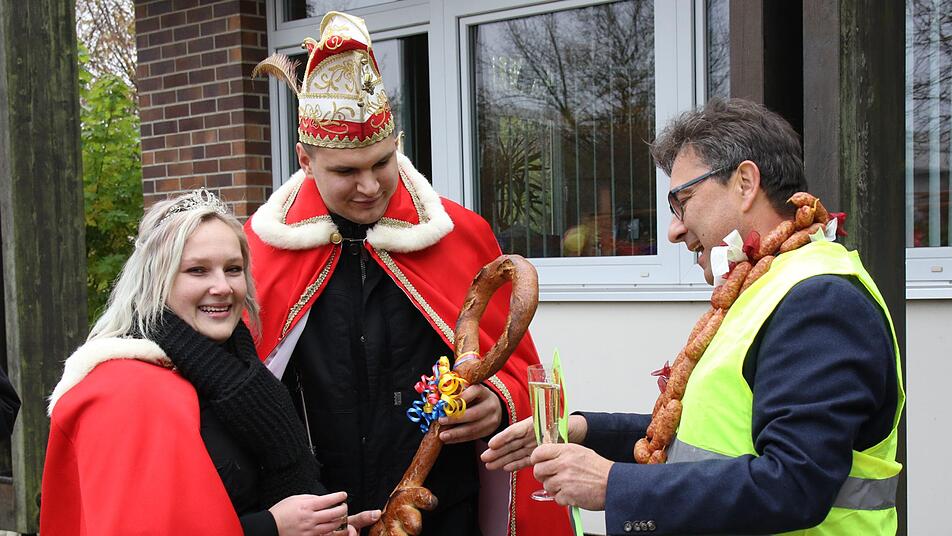 Bürgermeister Rolf Rosenbauer (CSU) hatte das Prinzenpaar und dessen närrischen Elferrat schon fünf Tage früher erwartet. Am Samstag wartete aber der Bürgermeister mit offenen Rathaustüren auf das närrische Volk. "Da hätten wir eigentlich gar keinen Schlüssel für das Rathaus gebraucht, auch bei uns gibt nur noch offene Türen im Rathaus", sagte ein Elferrat.
