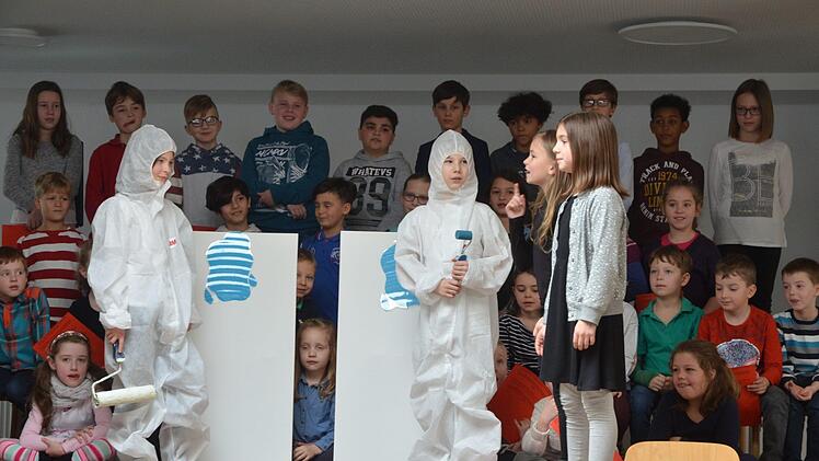 Dass allein die Entscheidung über die Farbe, die die Wände bekommen sollen, trefflich diskutiert werden kann, wenn eine Schule saniert wird, das führte die Schulspielgruppe der Emil-Fischer-Schule lustig vor Augen. Nach langen Monaten des Umbaus, haben Schüler und Lehrer jetzt eine moderne Umgebung zum Lehren und Lernen zur Verfügung. Die Wände sind übrigens weiß.