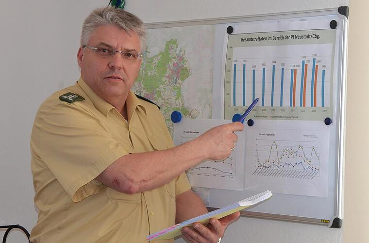 Ein differenziertes Bild zeigt sich bei den Eigentumsdelikten. Die Zahl der Diebstähle ging gegenüber 2016 um 44 auf 292 zurück. Die Zahl der Ladendiebstähle, die gesondert erfasst wird, stieg allerdings. Sie bleibt aber nach 46 Taten im Jahr 2016 mit 51 im vergangenen Jahr eher überschaubar - auch wenn in diesem Bereich eine gewisse Dunkelziffer angenommen werden muss. "Es sind oft Täter, die es wirklich nicht nötig hätten", merkt Matthias Schuhbäck dazu an. Zudem würden in der Mehrzahl Sachen von geringem Wert gestohlen, der in keinem Verhältnis zu den rechtlichen Folgen des Ladendiebstahls für den Täter steht.