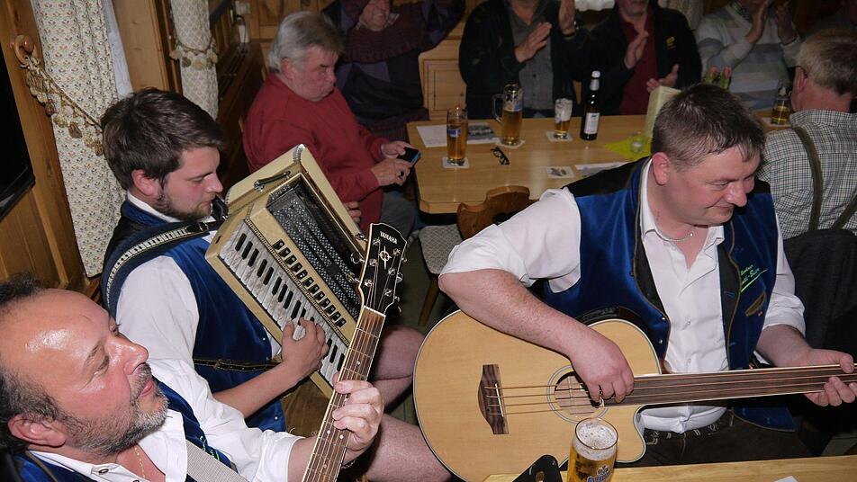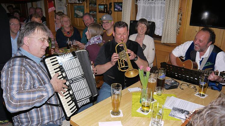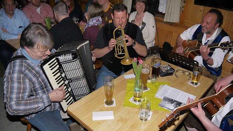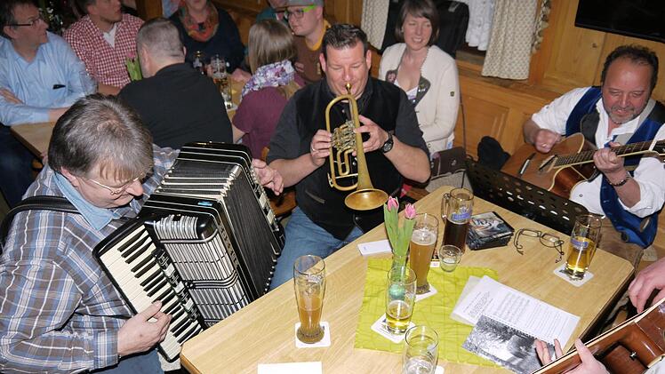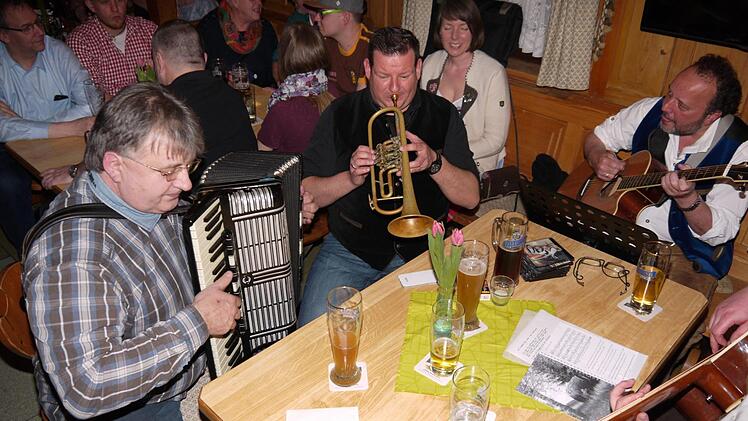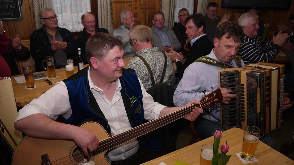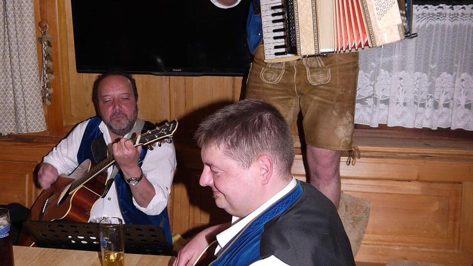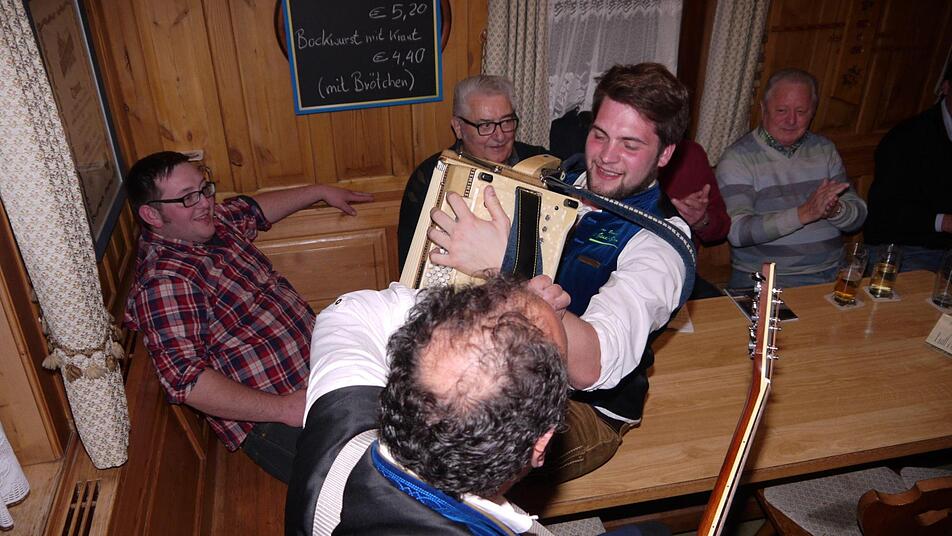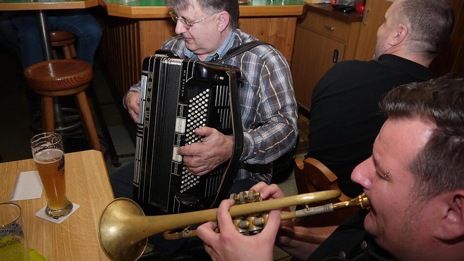 Verstärkung bekamen die "Gaudibuam" wie erhofft durch einige Musiker, die sich spontan auf den Weg ins "Wirtshaus-Brachland" Ebersdorf gemacht hatten. Michael "Gustl" Wunder (Nordhalben), Karlheinz Jahn (Carlsgrün) und Harald Kotschenreuther (Kronach) waren aus dem Frankenwald angereist, um beim Wirtshaussingen dabei zu sein. Es brauchte nur ein paar Lieder und das erste "Prosit der Gemütlichkeit" nach handgestoppten zwei Minuten, ehe Mitorganisator Mario Bamberger klar war: "Das sind alle Vollblutmusiker." Dementsprechend einfach gestaltete sich das gemeinsame Musizieren, unterstützt von weit über 100 Besuchern, die bei den Wirtshausklassikern begeistert mitsangen: Von "Hoch auf dem gelben Wagen" bis zu "Is Feieromd" am Ende des Programms.