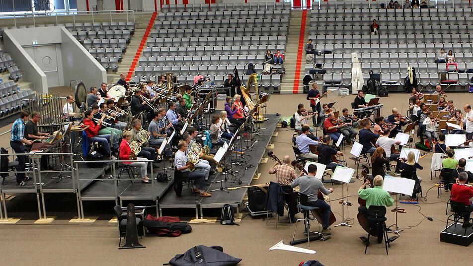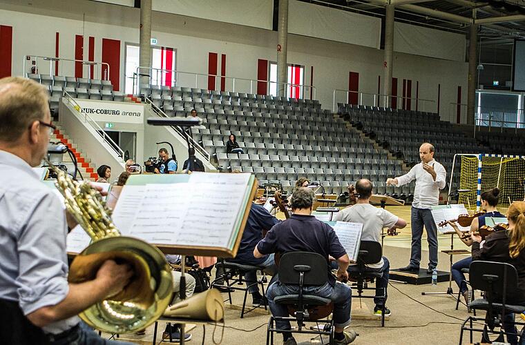 Heute schlägt die Stunde der Wahrheit. Taugt die Ballsporthalle auf der Lauterer Höhe als Konzertsaal? "Handball-Sinfonie" lautet das Motto für eine außergewöhnliche Begegnung von Kunst und Sport. Dazu hat das Philharmonische Orchester des Landestheaters Filmmusik-Hits einstudiert und am Donnerstag schon mal dort probeweise Platz genommen, wo sonst heftig um Hand- und Basketbälle gekämpft oder mit dem Volleyball geschmettert und geblockt wird.