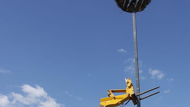 Ein bisschen schwieriger gestaltete sich da die Suche nach einem geeigneten Mast. "Dabei hatten wir im vergangenen Jahr schon einen schönen Strommast aus alten Eon-Beständen", erzählt Wolfgang Kraus, der Vorsitzende des am "Projekt Nisthilfe" mit beteiligten Obst- und Gartenbauvereins. Doch irgendwie lief es in der Kommunikation offensichtlich nicht ganz rund - denn plötzlich war der Mast zusammengesägt und damit unbrauchbar. Also ging die Suche wieder von vorne los.