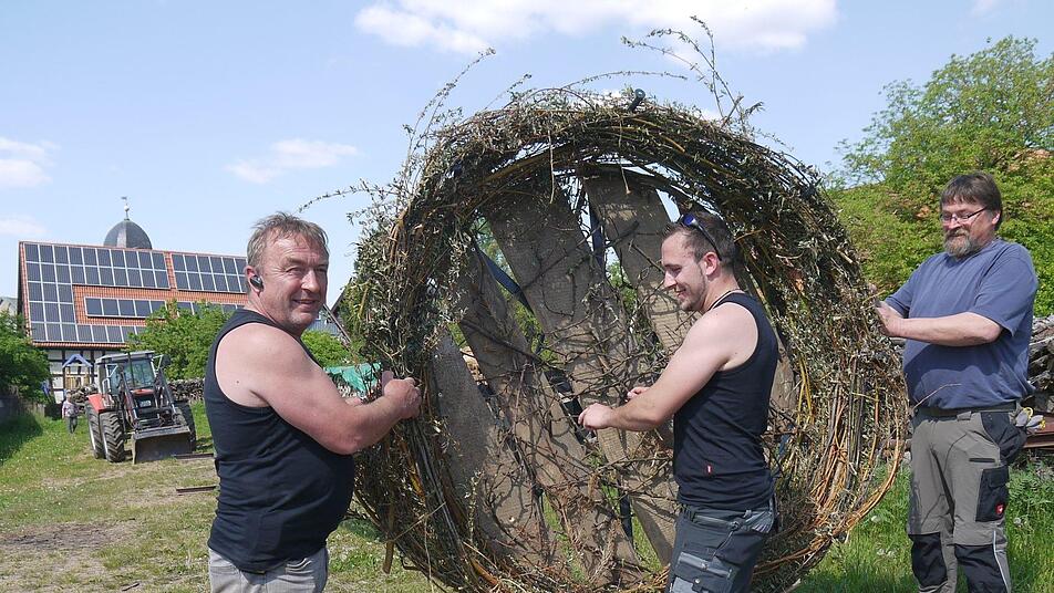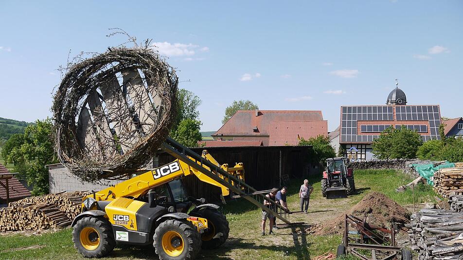 Und weil Reinhard Grell kein Mensch ist, der lange zögert, zaudert oder plant, hat er es nach ein paar losen Gesprächen mit der Naturschutzbehörde am Coburger Landratsamt auch gut sein lassen und die Nisthilfe mit ein bisschen Internetrecherche selbst gebaut. Gut anderthalb Meter im Durchmesser, aus Holz und mit einem Kranz aus alten Ästen und Reisig bestückt ist die Plattform nur ein paar Meter neben der Bundesstraße 4 durch den Itzgrund.
