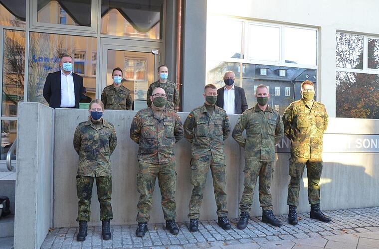 Die Soldaten, die in Sonneberg angekommen sind und in einem Hotel untergebracht werden, kommen vom Aufklärungsbataillon 13, das in der Friedenstein-Kaserne in Gotha stationiert ist. Fünf Mannschafts- und Unteroffiziersdienstgrade, werden jetzt bis zum 4. Dezember die Mitarbeiter des Gesundheitsamtes unterstützen, die sieben Tage die Woche im Einsatz sind. Am Freitag, nach Dienstantritt bei ihrem Einsatz in Sonneberg, erfolgte zunächst eine Schulung der Soldaten.
