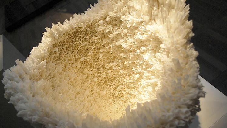 Der zweite Expeditionsweg der Glaskünstler führt an die Grenzen des Materials. So hat der früher bei Goebel wirkende Walter Stürmer aus Porzellan eine "Faltung" geschaffen oder auch die ironisch so genannte "Resignierende Tüte". "Dass so etwas heil aus dem Ofen kommt, setzt große Erfahrung voraus," sagt Sven Hauschke dazu.