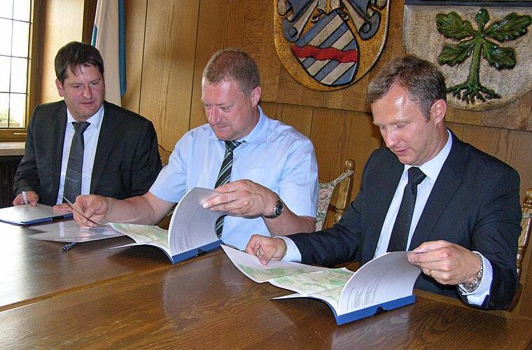 Zur Klärung letzter Details und rechtsverbindlicher Unterzeichnung des umfangreichen (vom Gemeinderat bereits befürworteten) Vertragswerks mit extrem langer Laufzeit hatten sich auf Einladung von Bürgermeister Michael Keilich (CSU) Bayernwerk-Kommunalkundenbetreuer Christian Ziegler und Bernd Göttlicher (Leiter Kommunen und Kooperationen Oberfranken) im Sitzungssaal des Rathauses eingefunden. Damit räumt die Gemeinde dem Energienetzbetreiber formal das Recht ein, das Gasnetz auf ihrem Gebiet zu betreiben sowie Versorgungsanlagen und Leitungen auf gemeindlichen Wegen und Grundstücken zu errichten.