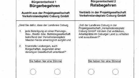 71 800 Wahlberechtigte im Landkreis Coburg sind aufgerufen, am Sonntag über eine finanzielle Beteiligung des Kreises am Bau eines neuen Verkehrslandeplatzes abzustimmen. Mindestens 10 770 Stimmen sind für eine Entscheidung nötig.