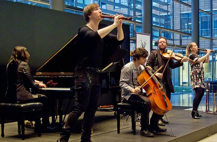 Geschickte Mischung Das im Jahr 2007 gegründete Ensemble musste sich nicht allzu lange mit der Einstufung als leicht exotisch gefärbter Geheimtipp begnügen. Spätestens mit dem Echo Klassik für das Debüt-Album "Downtown Illusions" haben Andrea Ritter und Daniel Koschitzki an den Blockflöten, Stefan Glaus (Violine, Viola), Victor Plumettaz (Cello) und Mischa Cheung (Klavier) einen ordentlich Sprung nach oben auf der Bekanntheitsskala geschafft.