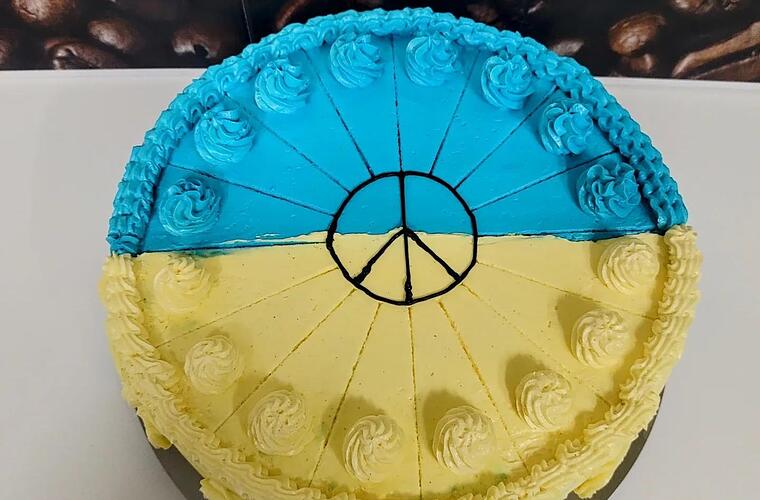 Deshalb wollte die 32-Jährige, die seit 2018 als Geschäftsführerin im Stadtcafé in Bad Rodach arbeitet, auf irgendeine Weise helfen. Denn: "Im Grunde geht es uns hier manchmal viel zu gut, und in solchen Zeiten, muss man einfach Solidarität zeigen." Und dann hatte sie die Idee zu einer ganz besonderen Torte: Vanille-Buttercreme, in den ukrainischen Nationalfarben Blau-Gelb.