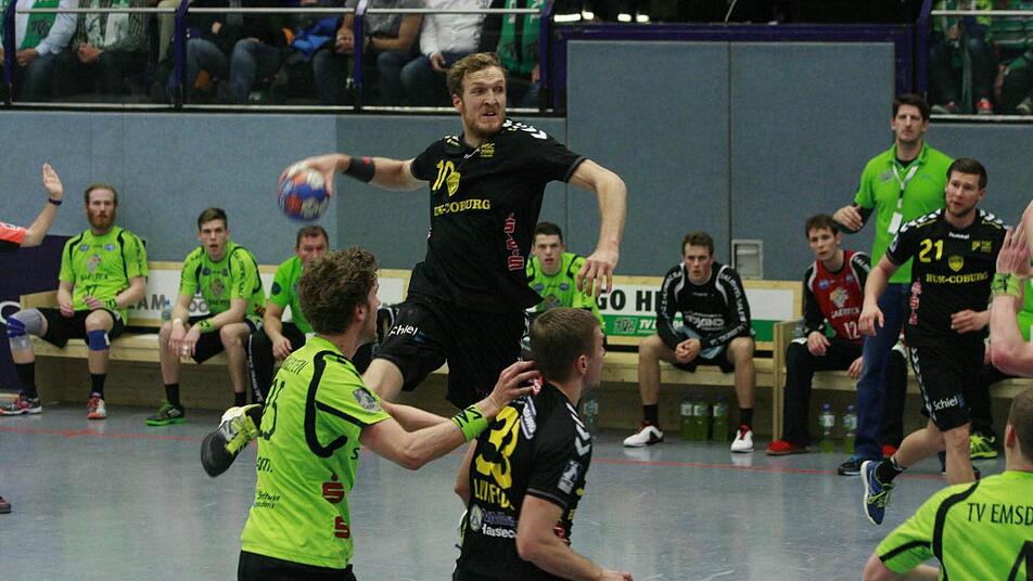 Aber Emsdetten legte körperlich noch eine Schippe drauf. Wer sich zudem wirklich steigerte war Nils Babin im Gehäuse des TVE. Mit einem 4:0-Lauf halbierte Emsdetten den Vorsprung des Gegners. Auf Coburger Seite konnte man da nach sechs torlosen Minuten schon durchatmen, dass Mike Brasseleur, im ersten Durchgang ein Mal erfolgreich, fünf Mal erfolgreich "abfackelte" und so den TVE auf Distanz hielt. Insgesamt war es aber eine äußerst souveräne Vorstellung der Coburger, die eine absolut geschlossene Leistung boten.