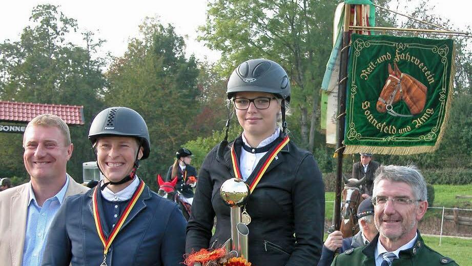 Auf den Siegerpodesten bei der Kreismeisterschaft im Reitsport waren die Amazonen unter sich. Das Finale fand in Sonnefeld statt. Landrat Michael Busch nahm die Siegerehrung vor.