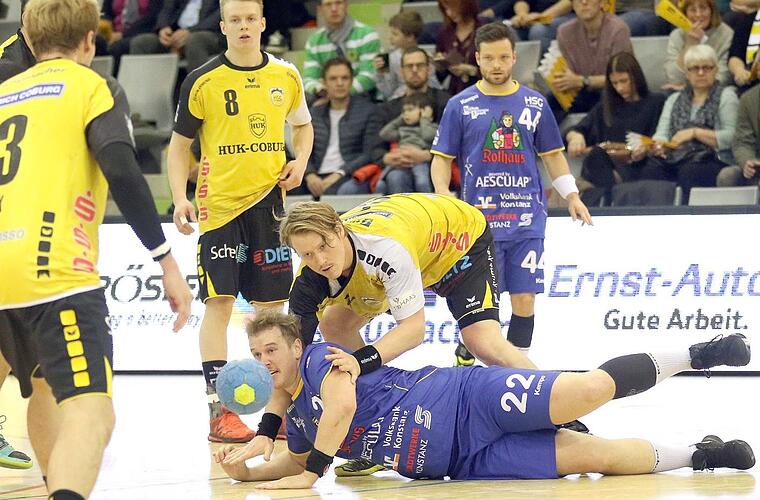 Während Coburg weiter "ohne sechs" zurechtkommen musste, hatte die HSG Konstanz mit Konstantin Poltrum, eigentlich die Nummer Eins im Tor der Mannschaft vom Bodensee, mit einer Handverletzung ebenfalls einen schwerwiegenden Ausfall zu verkraften.