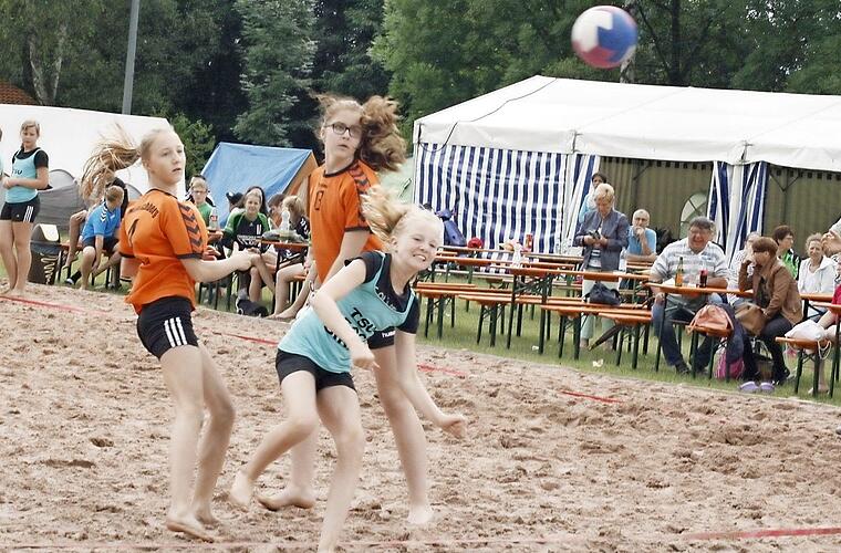 Die Kinder und Jugendlichen ließen sich beim elften Beach-Turnier in Weitramsdorf den Spaß am Handball auch vom Regen nicht vermiesen.