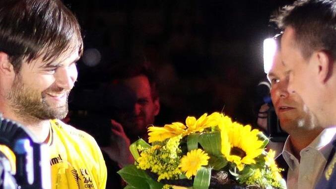 HSC-Linksaußen Steffen Coßbau: "In meinen vier Jahren hier haben wir viel erreicht. Zwei Aufstiege, ein Abstieg und das mit der tollen Kulisse hier. Es hat Spaß gemacht."