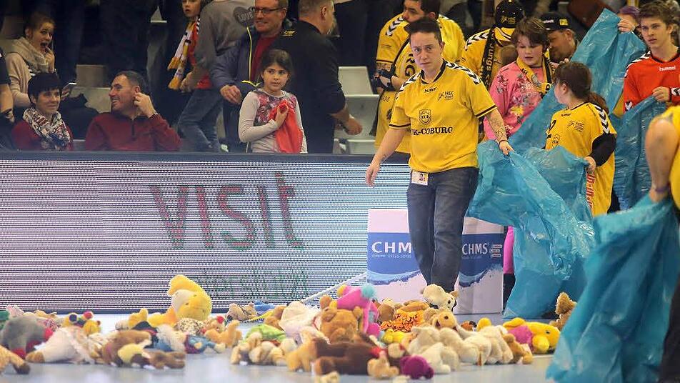 Der Pokalsieger lässt dem HSC 2000 Coburg nicht den Hauch einer Chance. In der Pause flogen die Kuscheltiere.