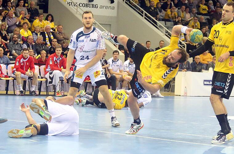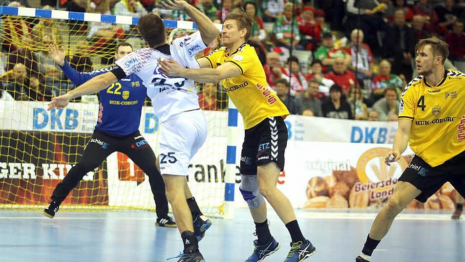 Nur am Anfang herrschte Hexenkessel-Atmosphäre, in der die Coburger für ihre Tore meist hart arbeiten mussten. Anders als die Magdeburger, die überfallartig dem HSC-Gehäuse entgegenstrebten, wann auch immer sich die Gelegenheit bot. Nur die 3:2-Führung des HSC resultierte aus einem Kontertor durch Florian Billek. Ansonsten biss sich der HSC gegen die Abwehr der Gäste, bestens von van Olphen und Musa organisiert, mehr und mehr die Zähne aus. Magdeburg konnte es sich sogar leisten, den Europameister und olympischen Bronzemedaillengewinner Finn Lemke ganz auf der Bank zu lassen.