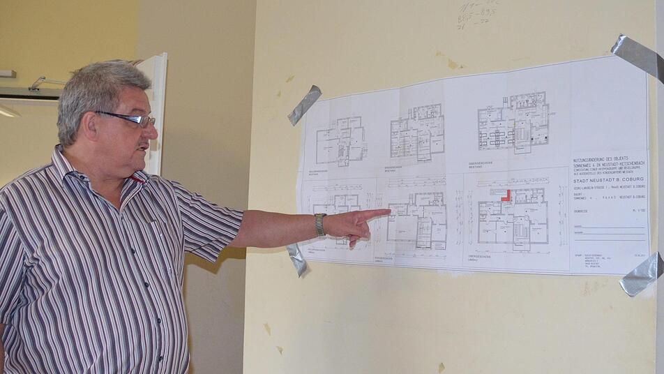 "Das ist für uns jetzt schon auch ein Vorteil", sagt Architekt Ulrich Bieberbach. Es wurde ja bereits einiges verbessert. Allerdings war der Umbau ja für fast Erwachsene ausgestattet worden. "Wir müssen natürlich den kompletten Sanitärbereich umbauen", sagt Bieberbach. Im Augenblick ist das Gebäude praktisch vollkommen entkernt. "Wenn wir fertig sind, soll der Standard gegenüber anderen Kindergärten im Stadtgebiet gleich sein", betont Bieberbach. Im Erdgeschoss, wo die Krippengruppe mit zwölf Plätzen untergebracht wird, bauen die Handwerker eine Fußbodenheizung ein. Neue Wände grenzen einen Schlafraum ab, den die Erzieherinnen durch ein neues Fenster im Blick haben können. Auf dieser Ebene wird auch die Küche entstehen. Dafür können die Einrichtungsgegenstände verwendet werden, die - allerdings im Obergeschoss - verbaut waren, als die jungen Flüchtlinge hier einquartiert waren. Die Gegenstände wurden vom Landratsamt abgekauft, das sie damals auch angeschafft hatte.