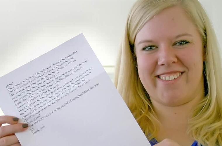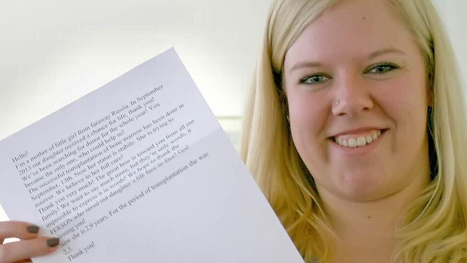Über ihre Betreuerin bei DKMS erfuhr die Spenderin aus Coburg, dass es sich um ein zweieinhalb Jahre altes Mädchen aus Russland handelt, das seit seiner Geburt nur im Krankenhaus war. Der Gedanke, dass das Kind sein erstes Weihnachten zu Hause verbracht hat, rührt sie sehr. "Leider kann ich es erst im September 2015 persönlich kennenlernen", bedauert die junge Frau. Bis dahin läuft alles nach den deutschen Richtlinien anonym über die DKMS.
