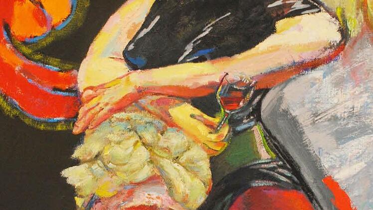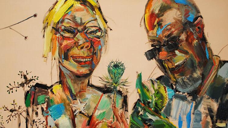 Coburg geholten Gemälden auch viel Satire, Ironie und Witz. "Die Pampels", oje, die heißen nicht nur so. "Die Gilles", denen springt der Schalk selbstironisch bis zur Groteske aus den Gesichtern. Die Expressivität Sighard Gilles gewinnt ihre Kraft aus dem Gegeneinander von möchtemanmeinen unverträglichen Farben, von Flächigem neben kleinteilig Erfassten.