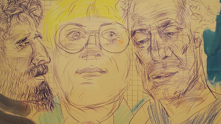 Auch in Gilles wilden Zeichnungen tobt eine Kraft, die erstaunlich schnell und präzise zur Charakterisierung kommt. Bestimmt hat sich der Stift verselbständigt, so rasch und souverän wirken die Darstellungen der Personen.