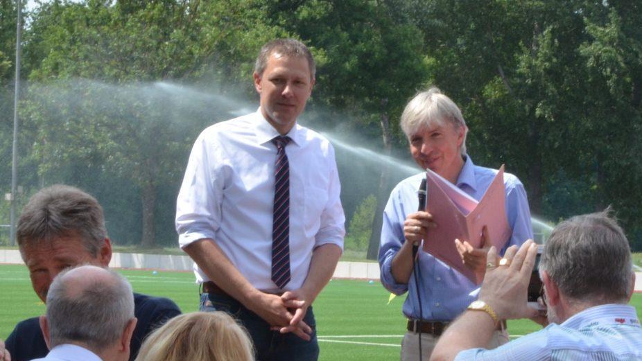 Landrat Michael Busch erinnerte an die 70er Jahre, in denen in Rödental noch Leichtathletikwettkämpfe ausgetragen wurden - und er selbst dabei neue Rekorde aufstellte. "Damals allerdings noch auf Asche", wie er betonte. Für die Schulen zeigte sich Bernd Schick, Rektor der Mittelschule begeistert von den neuen Möglichkeiten. "Gerade jetzt, mit der Auslagerung während der Sanierung der Mittelschule können wir die Anlage gut gebrauchen, damit unsere Schüler hier ihren Bewegungsdrang ausleben", sagte er.