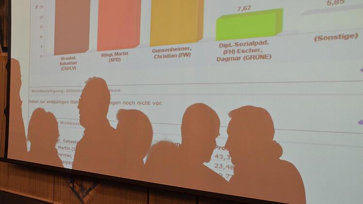 Doch davor beginnt der Wahlabend im großen Sitzungssaal des Landratsamtes spannend. Alle rechnen mit einer Stichwahl. Doch wer wird es dorthin schaffen? Als Martin Truckenbrodt schon kurz vor der Schließung der Wahllokale, eintrifft, ist der Saal bereits gut gefüllt - mit überwiegend Anhängern der CSU.