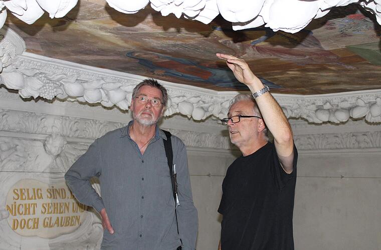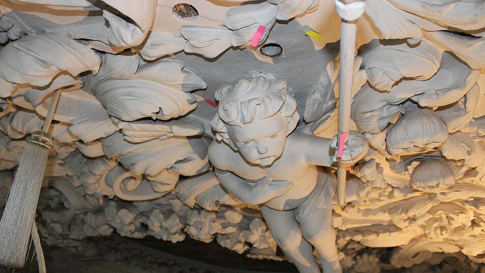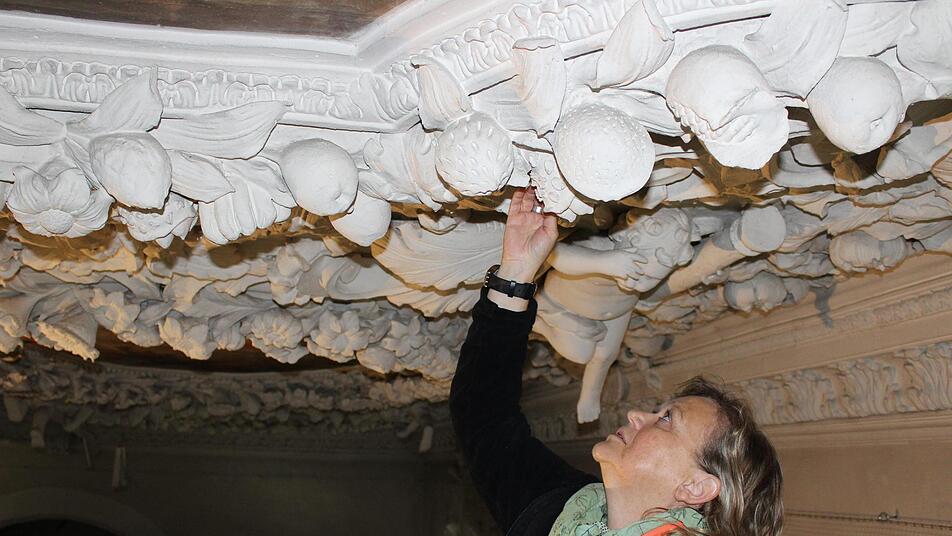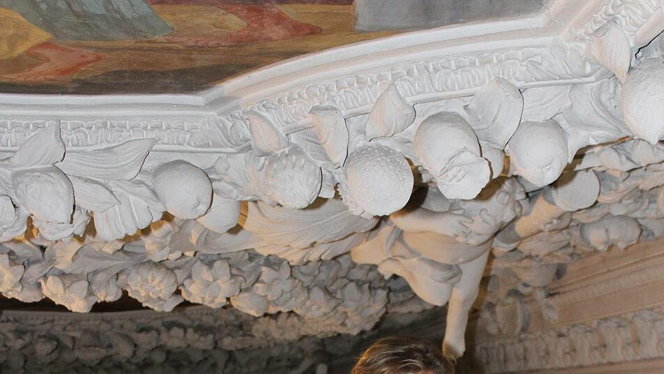 Die Renovierung der Hassenberger Schlosskirche läuft in drei Phasen. Besonderes Augenmerk gilt der Stuckdecke.