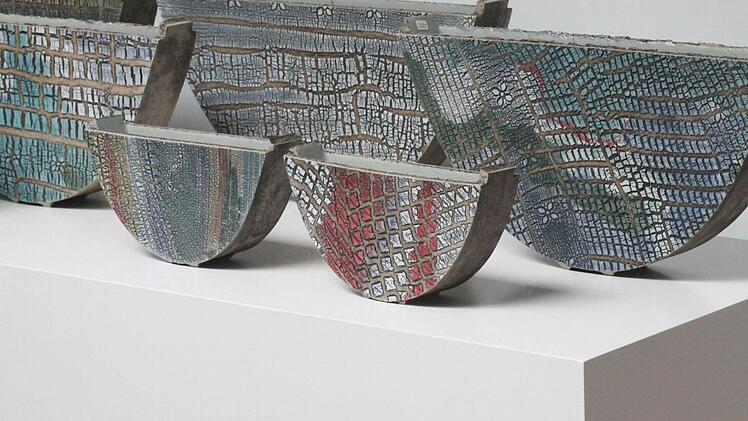 Noch länger im Ofen müssen die Vasen von Klaus Dorrmann gebrannt werden: rund 16 bis 17 Stunden bei 1340 Grad. "Reduzierend gebrannt" werden seine Arbeiten - unter Entzug von Sauerstoff. Bei seinen Objekten setzt Dorrmann auf die ungewöhnliche Verbindung von Steinzeug und Porzellan. Eigentlich vertragen sich diese beiden Materialen gar nicht.