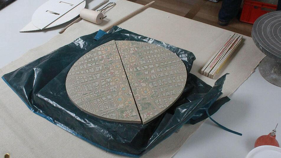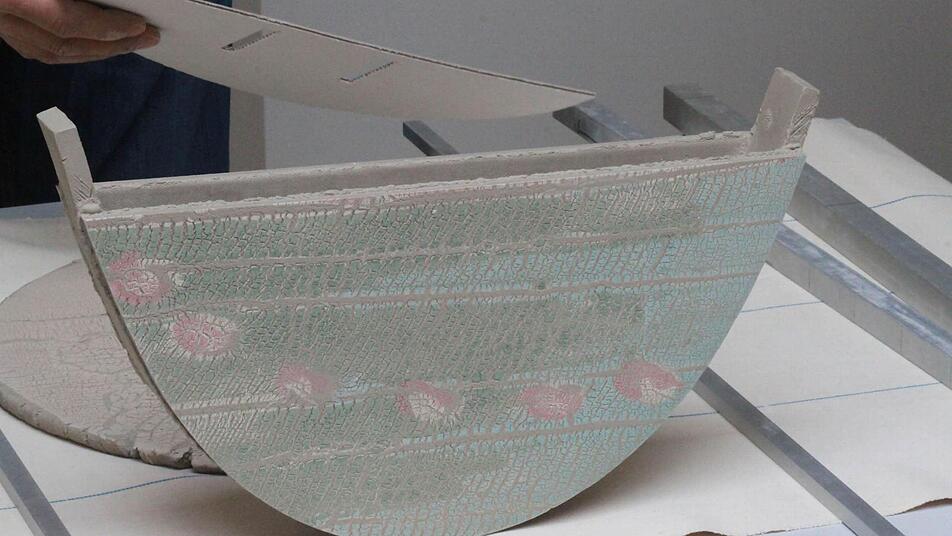 Rund zwei bis drei Wochen dauert es, bis auf diese Weise eine großformatige Vase gestaltet ist. Ist der Rohling fertig, muss er auftrocknen. Rund zwei Wochen nimmt das in Anspruch. Erst dann ist er reif für den ersten Brand - den rund zehn Stunden dauernden Schrüh-Brand bei relativ niedrigen Temperaturen von 960 Grad. "Dann nimmt der Scherben nämlich noch Wasser auf", erklärt die Künstlerin. Erst danach kommt die Glasur aus Porzellan Engobe drüber, die dem Objekt schließlich einen matten Glanz verleiht. Der dafür nötige zweite Brand bei rund 1300 Grad Celsius dauert nochmals rund zehn, elf Stunden.
