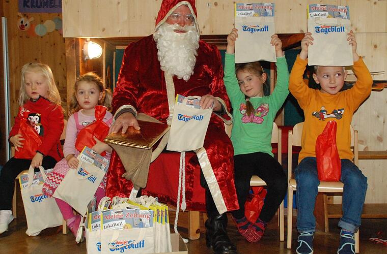 Die Säckchen sind heuer besonders gut gefüllt, denn das Coburger Tageblatt hatte eine Abmachung mit dem Nikolaus. Neben einer bunten Tasse mit Prinzessin- oder Pirataufdruck sollte noch was Gesundes drin sein. Und so gab's Mandarinen und Apfelsaft aus der heimischen Produktion. Außerdem teilte der Nikolaus noch gesonderte Tageblatt-Säckchen aus, in denen kleine Überraschungen auf die "braven Kinder" von Elsa warteten.