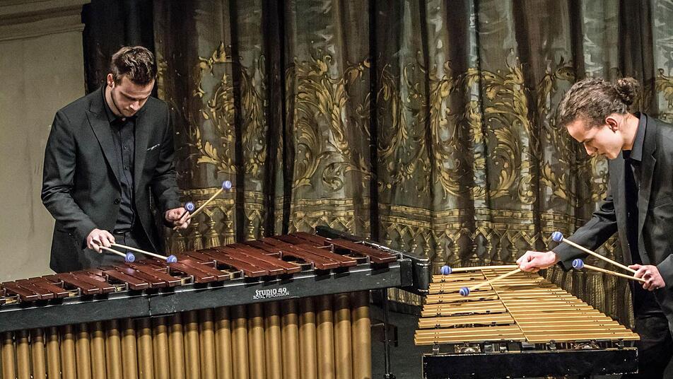 Eine faszinierende Klangfarbe brachten Leonard Reißenweber am Vibrafon und Philipp Mohr am Marimbafon ins Programm.