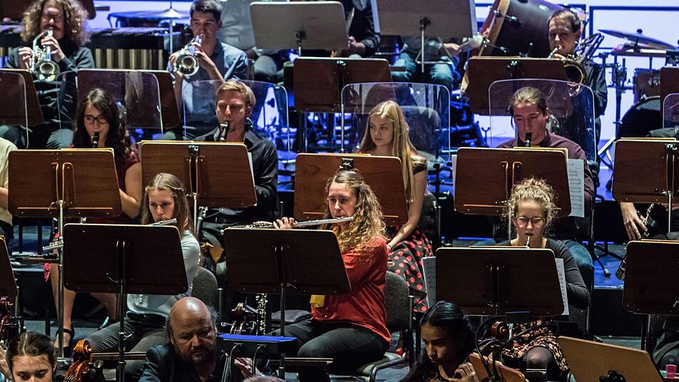 Bunt geht es zu an diesem Abend auf der Bühne des Landestheaters Coburg. Stark verjüngt präsentiert sich bei diesem Konzert das Philharmonische Orchester. Schwarz gekleidet sind die Profis, bunt gewandet Schüler und Jugendliche, die gemeinsam mit den Philharmonikern musizieren. Mitmachkonzert lautet das Motto des Konzerts, das ein bunt gemischtes Publikum anlockt.
