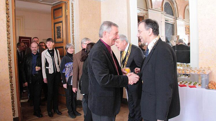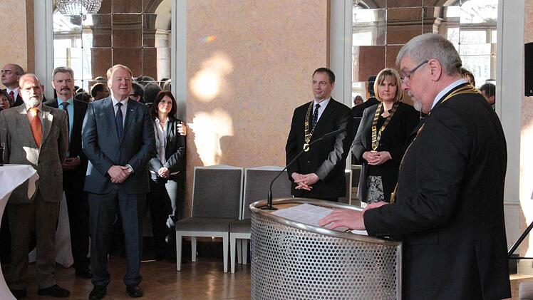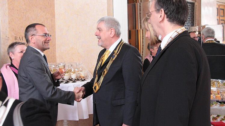 Die Tradition der Neujahrsempfänge war einige Jahre lang unterbrochen gewesen - aus Spargründen. Sparen muss (und will) der Stadtrat immer noch, aber mit dem neuen Oberbürgermeister gab es auch wieder einen Neujahrsempfang im Spiegelsaal des Landestheaters. "In Ihrem Landestheater!", wie Intendant und Hausherr Bodo Busse zur Begrüßung betonte. Dass dieses Landestheater in den nächsten Jahren generalsaniert wird, war lange zur Debatte gestanden und gilt nun als sicher, nachdem Freistaat und Stadt sich über den Umfang dieser Sanierung geeinigt haben.
