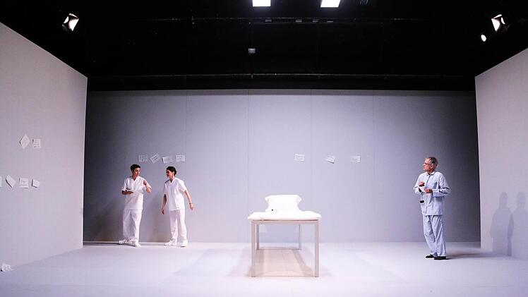 Gastregisseur Kay Link hat die spannende Szenenfolge im klinisch-nüchternen weißen Raum von Ausstatter Frank Albert sensibel und durchaus humorvoll inszeniert. Mit minimalen äußeren Mitteln ist es die Stunde der Schauspieler, die die immer abstruser werdenden Situationen und Gespräche durchleben (lassen ).