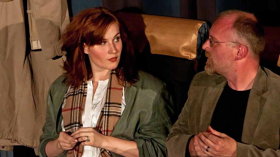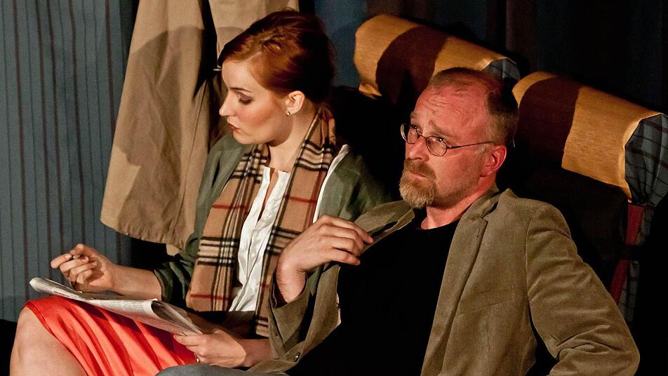 Möglichkeiten spannend darstellen lässt. Vier gepolsterte Stühle, die ein Zugabteil andeuten (Ausstattung: Edina Thern), dazu die passenden Lautsprecher-Durchsagen für die nächsten Bahnhöfe - mehr braucht es eigentlich gar nicht, um die Begegnung zweier einsamer Seelen als unterhaltsames Kammerspiel zu zeigen.