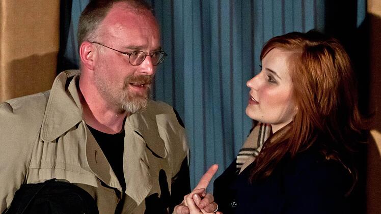 Der Abend im Rathaussaal in Rödental beginnt mit einer kleinen technischen Panne und endet mit Bravo-Rufen. Eigentlich keine schlechte Dramaturgie für einen Premierenabend, bei dem die beiden Darsteller schließlich sogar vom Intendanten höchstpersönlich Blumen überreicht bekommen.