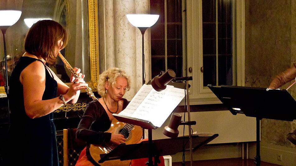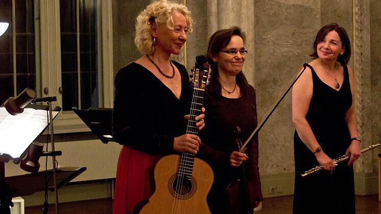 Das "Trio con brio" gastiert im Marmorsaal. Das Programm bietet Musik für Flöte, Viola und Gitarre und führt nach Spanien und Italien sowie nach Brasilien und Argentinien.