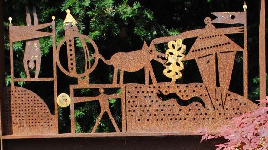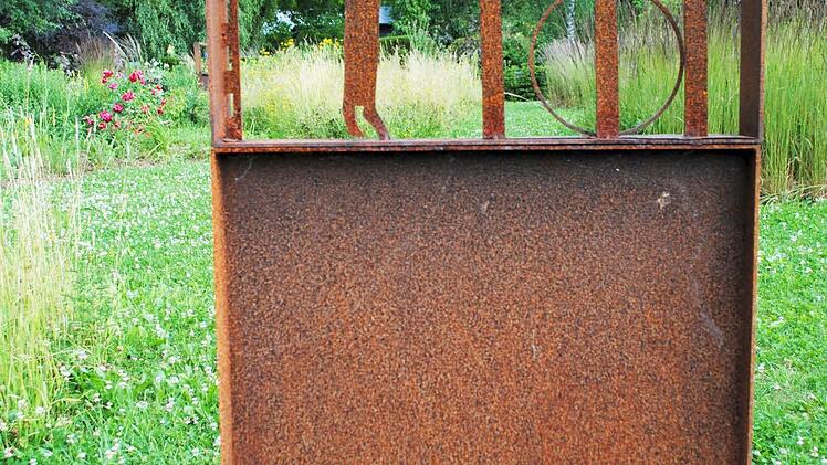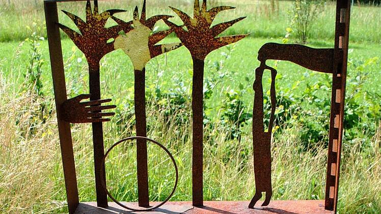 Die neue Doppelausstellung imThieracher Kunstgarten zeigt Gemälde und Holzobjekte der Berliner Künstlerin Michaela Rothe und aus rostendem Stahl geschnittene Bilder von Robert Siebenhaar.