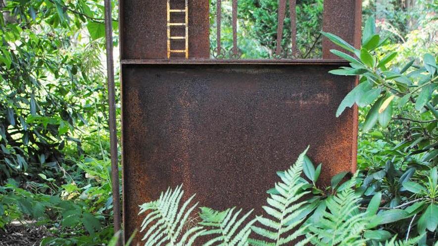 Im Weißwald In ihren ganz kleinen wie in den großformatigen Bildern verbinden sich Öl, Sand, Seidenpapier zu zarten inneren Landschaften. An Rothes "Waldwassern" blickt man durch Ast- und Strauchwerk auf ein verstecktes Haus. Im "Weißwald" breitet sich zauberhafte Stimmung aus. Draußen dann an den verschlungenen Gartenwegen sind Robert Siebenhaars erst Recht zauberhafte Stahl-Bilder zu finden: Zu lebendigem rotbraunen Farbenspiel gerostete "Scherenschnitte", die sich markant und hintersinnig gegen den hellen Himmel und das vielfältige Grün des Gartens abzeichnen.