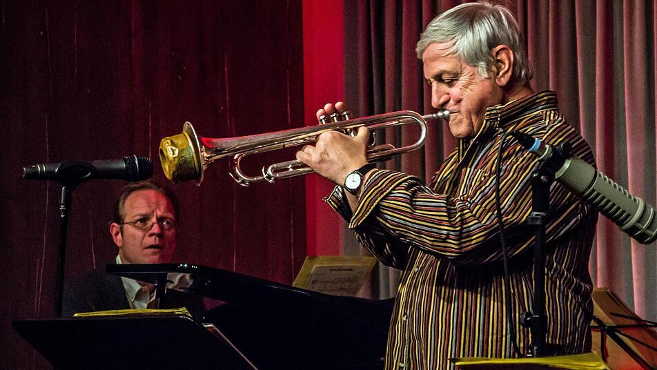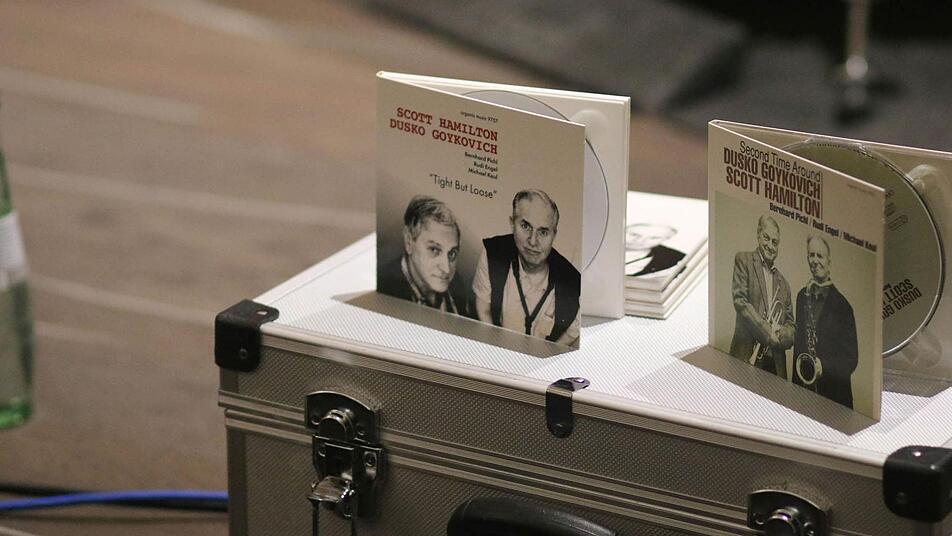 Dann greift Dusko Gojkovic wieder zu seiner Trompete, lässt sie in virtuosen Girlanden in die Höhe steigen und findet dann mit größter Selbstverständlichkeit zum nahtlosen Zusammenklang mit Hubert Winters Tenorsaxofon.