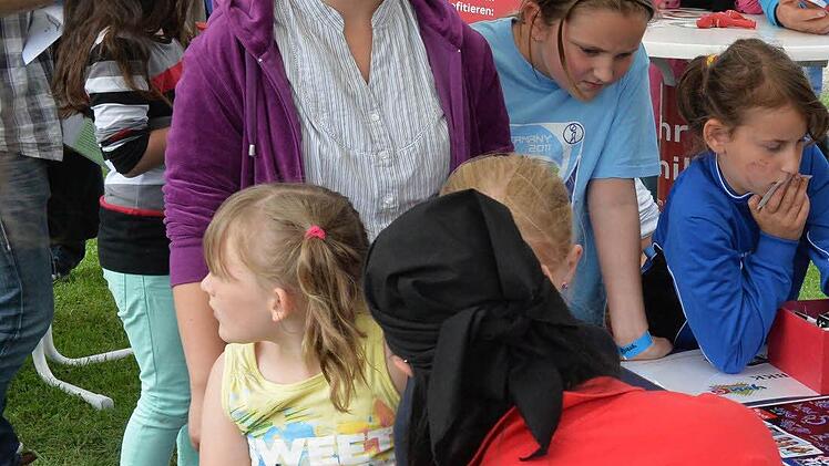 Um 16 Uhr hielt es auch Sebastian nicht mehr an den Spielstationen. Er hatte sich beeilt und tatsächlich alle acht erforderlichen Stände für die Teilnahme an der YouCo-Olypiade bewältigt. Jetzt hieß es "Bühne frei" für "Deine Freunde", die ultimative Band, bei der Kindlichkeit und Coolness durchaus Hand in Hand gehen. "Aus'm Häuschen" heißt ihr Debütalbum, und mit ihrer Show machten sie dem alle Ehre.