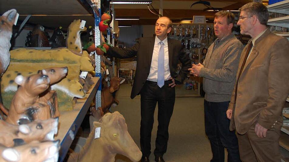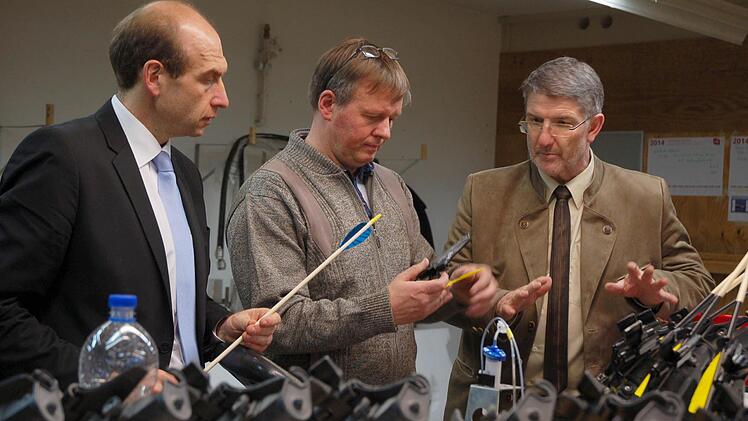 Diese Besuche sollen dem Landrat helfen, Kontakt mit der heimischen Wirtschaft zu halten. Er will wissen, was der Landkreis an Unternehmen zu bieten hat, welche Ideen und Möglichkeiten es hier gibt, und welche Probleme die aktiv Wirtschaftenden sehen. Nicht selten kommt Michael Busch dabei ins Staunen - wie bei Bogensport Beier in Seßlach.