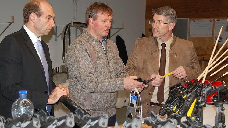 Über Handelspartner und das Internet gehen Bogen und Zubehör aus Seßlach in viele Länder Europas und in die USA. In der Schreinerei im Keller läuft die Arbeit auf Hochtouren. "Das ist halt wirklich gute alte Schreinerarbeit", ist der Landrat begeistert.