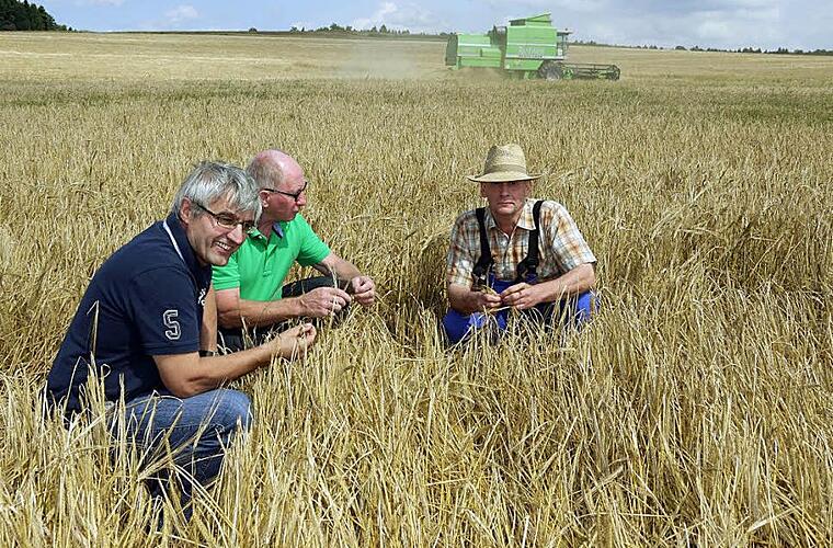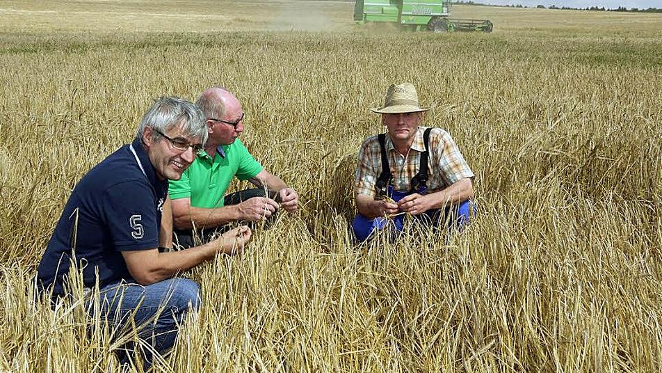 Im Frühjahr waren die Aussichten noch anders. "Da haben wir gedacht: Das wird nichts mehr", erinnert sich Gerhard Ehrlich, Coburgs Kreisobmann im Bayerischen Bauernverband (BBV). Die späten und extremen Frostperioden zum Ende des vergangenen Winters rissen teilweise dramatische Lücken in die Getreidefelder. Und in jenen Lücken konnte sich dann im Frühjahr das Unkraut breit machen. "Das gab dann blühende Getreidefelder", erinnert sich BBV-Kreisgeschäftsführer Hans Rebelein, der ebenfalls auf den Langen Bergen seine Felder hat.
