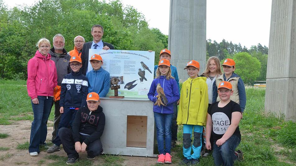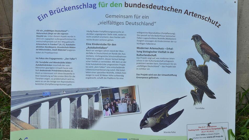 Artenschützer und Schüler hatten die Stadt Rödental und die Autobahndirektion Nordbayern als weitere Partner an ihrer Seite. Finanziell wurde die Aktion durch die Umweltstiftung Greenpeace getragen. Doch bevor es zur Brücke und zur Tat gehen konnte, wollten die Schüler einiges wissen. "Wir waren eineinhalb Stunden in der Klasse, und haben erst einmal über den Falken theoretisch informiert", sagt Thomas Köhler, der Vorsitzende der Initiative Artenschutz in Franken.
