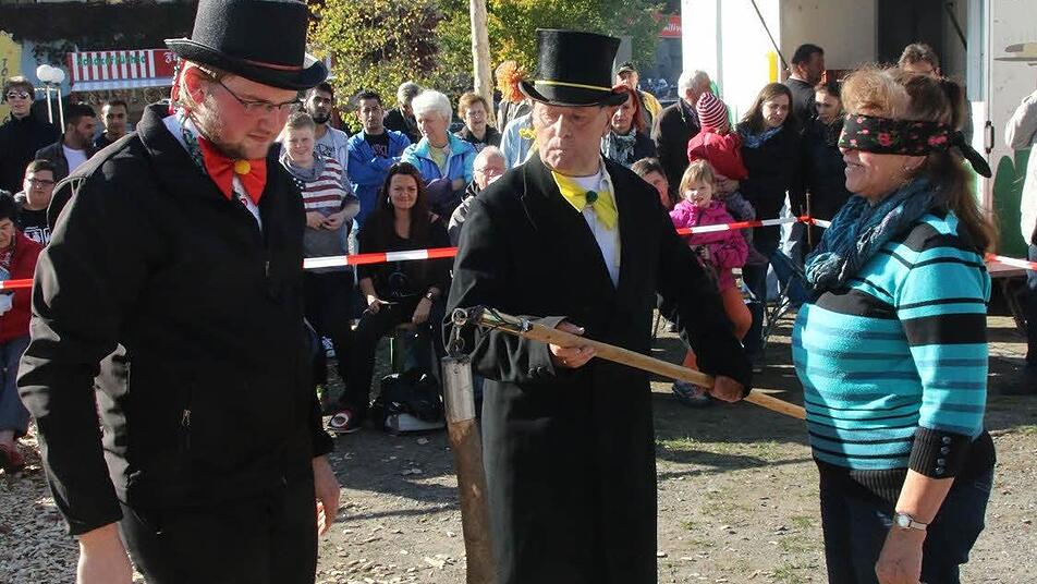 "Links, links, vor, vor, zurück, zurück - jetzt schlagen", rufen die Besucher am Freizeitgelände in Untersiemau von allen Seiten in Richtung des abgesperrten Rings. In dessen Mitte stehen die Akteure mit verbunden Augen und mit einem alten Dreschflegel in der Hand. Sie lassen sich gerne in die Nähe des vermuteten Blumentopfs dirigieren, weil sie ihn unbedingt mit einem gezielten Schlag treffen wollen.