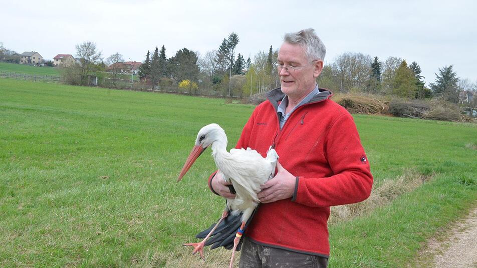 Während sich die Tiere langsam ihrer Freiheit bewusst werden, forscht Lessing in seinem Smartphone - und staunt nicht schlecht. "Mache mir große Sorgen, das Männchen kam gestern nicht nach Hause", schrieb er an den Storchenbeauftragten des Landesbundes für Vogelschutz, Hans Schönecker. Das war am 16. März. Beide waren wenige Tage später, als ein toter Storch an der B4 gemeldet wurde, davon ausgegangen, das Männchen von Lessings Horst sei tot.