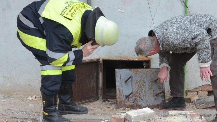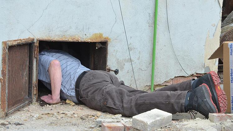 Am Freitag wendet sich Lessing an die Tageblatt-Redaktion. Von dort wird der Kontakt zu Kreisbrandinspektor Reiner Hartung hergestellt, der wenig später zusammen mit Lessing in Untersiemau eintrifft, um sich ein Bild der Lage zu machen. Mit Genehmigung des Eigentümers suchen sie nach einem Weg, um zumindest zu klären, ob das Tier noch lebt. Mehrere Versuche scheitern. Schon ist der Feuerwehrmann dabei, die Kollegen mit Schneidegerät anzufordern.