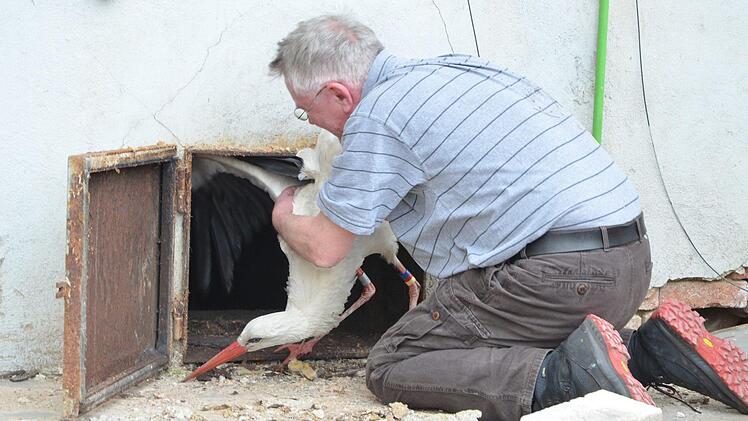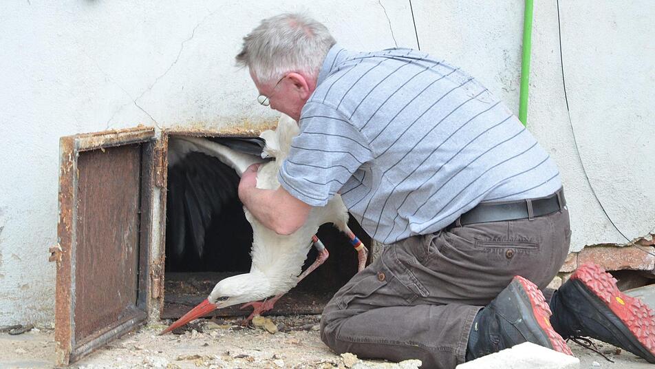 Fast täglich landet die Storchendame auf dem Schornstein der ehemaligen Firma Wagner in Untersiemau. Von hier aus kann sie den Itzgrund weit überblicken. Doch am Donnerstagmorgen passiert ihr ein Missgeschick. Sie rutscht ab und fällt in die Schlotmündung. Kurz kann sie sich noch mit den ausgebreiteten Schwingen halten. Dann versagen ihre Kräfte. Sie rutscht in die Tiefe, kann sich nicht mehr befreien.