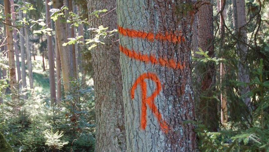 Nicht immer gelingt es, dafür Verständnis zu erzeugen, aber Forstleute müssen sich mit dem Blick der Bevölkerung auf ihre Arbeit beschäftigen. Dieser Blick fällt auch auf die fast schon geheimnisvollen Zeichen, die manche Bäume zieren. Mal zieren Stämme blaue, dann wieder rote oder weiße Linien, Es gibt Buchstaben, Zahlen oder Pfeile.